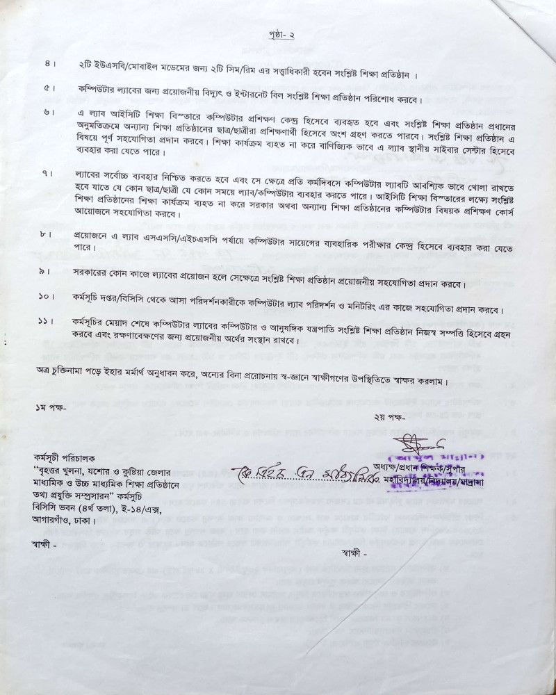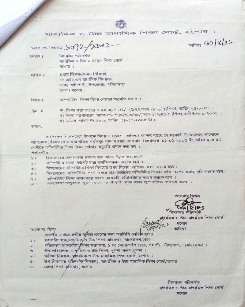 কম্পিউটার শিক্ষা বিষয় খোলার অনুমতি পত্র