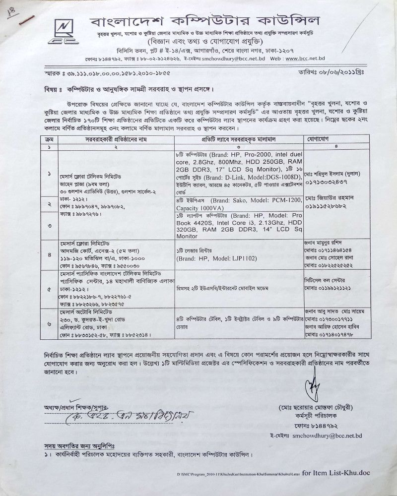 বাংলাদেশ কম্পিউটার কাউন্সিল কর্তৃক প্রদত্ত ল্যাব